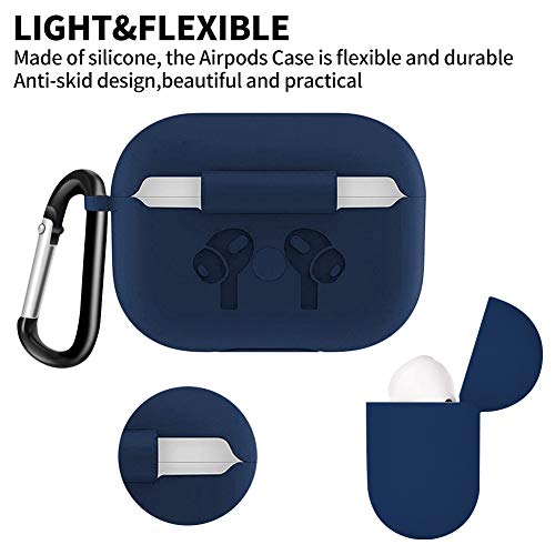 OKZone Custodia di ricarica degli Compatibile per AirPods Pro 2019, Cover Protettiva in Gel Silicio Liquido [con Moschettone], LED Frontale Visibile per Apple AirPods Pro 3 Generazione (Blu)