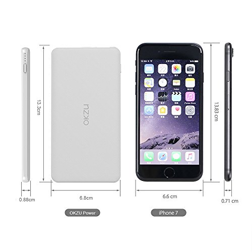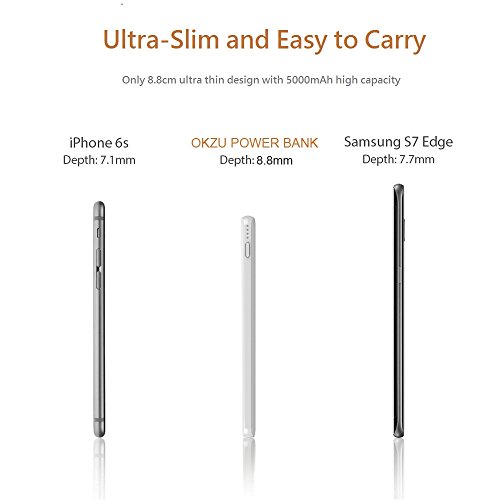 Okzu Slim - Caricabatterie portatile da 5000 mAh, Tipo C, input/output, batteria esterna, ultra sottile, compatta e leggera per iPhone 7 / 6S / 6 / Samsung Galaxy / Nexus / HTC / Huawei e altri