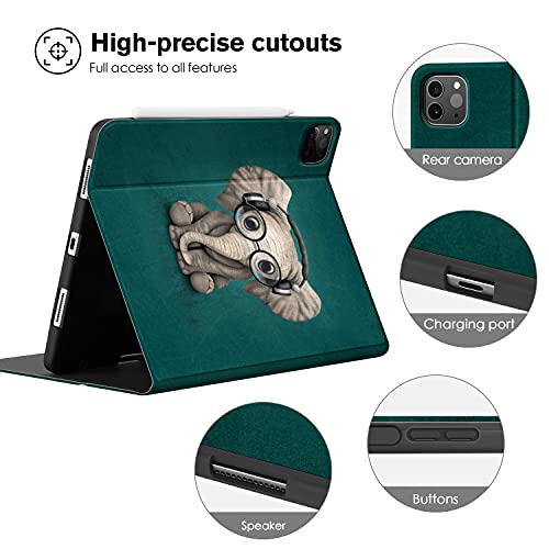 OLAIKE Custodia per iPad Pro 11" 2020 & 2018, Auto Sleep/Wake, supporto ricarica wireless Apple Pencil (2a Gen), design copertina libro con portamatite, supporto multi-angolo, L'elefante