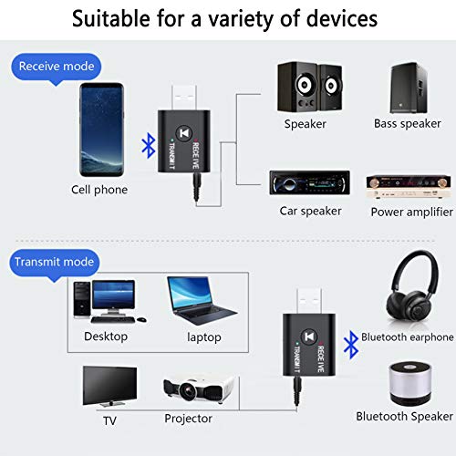 Olakin Adattatore Bluetooth, 2 in 1 USB Adattatore Bluetooth 5.0 Trasmettitore Ricevitore con 3.5mm AUX Wireless Audio Bluetooth, Plug And Play per TV/PC/Telefoni/Altoparlanti/Autoradio