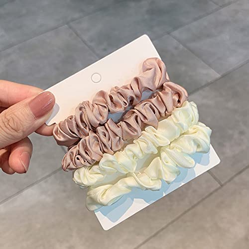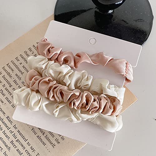 Olakin Elastico per Capelli in Vera Seta[4Pezzi], Small Bande Elastiche per Capelli, Accessori per Capelli, Fascia a Coda di Cavallo, Elastici Per Capelli di Donna & Ragazza(Bianco e Rosa)
