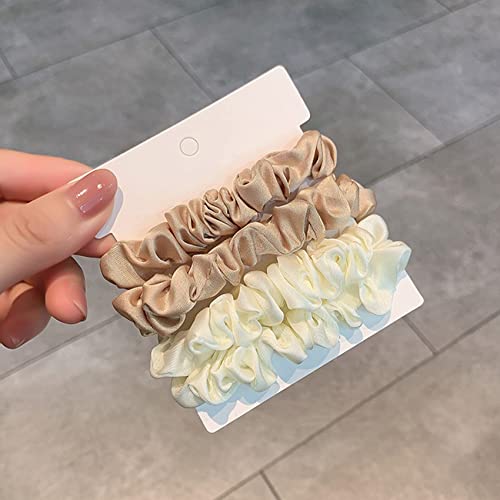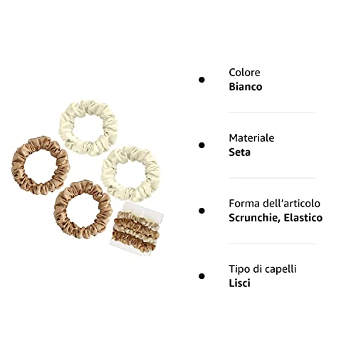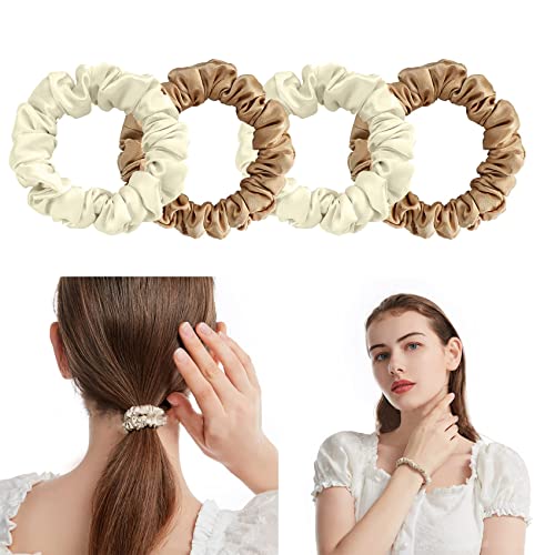 Olakin Elastico per Capelli in Vera Seta[4Pezzi], Small Bande Elastiche per Capelli, Accessori per Capelli, Fascia a Coda di Cavallo, Elastici Per Capelli di Donna & Ragazza(Bianco e Oro)