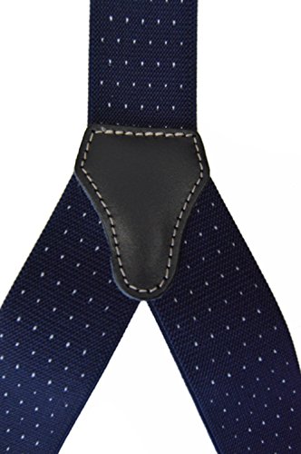 Olata Formal Unisex Bretelle regolabili con Vera Pelle Asole, 3.5cm larghezza - Blu scuro con Puntini Bianchi