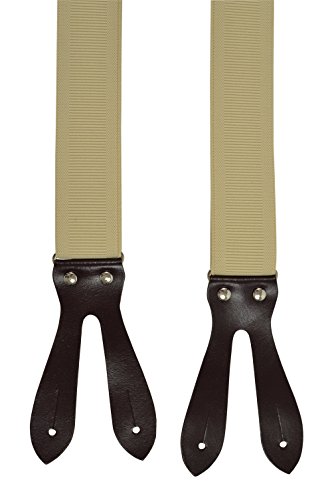 Olata Unisex Bretelle regolabili con Vera Pelle Marrone Scuro Asole, 3.5cm larghezza - Crema Chiaro