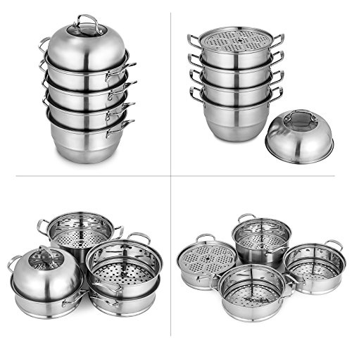 OldFe 30cm Diametri Pentola A Vapore A 5 Piani con Coperchio Set di Cottura al Vapore in Acciaio Inox Ø26cm per La Cucina A Casa Bar O Ristorante