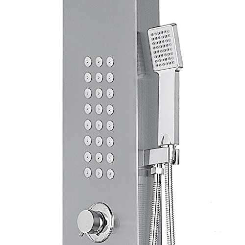 Il pannello ispessito in acciaio inossidabile 304, i connettori in ottone ei tubi antideflagranti rendono questo pannello doccia argento resistente alle alte temperature e alle perdite per garantire una qualità eccellente. L'elegante superficie è antiruggine, a prova di dito e facile da pulire.