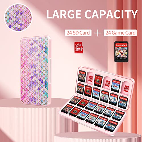 OLDZHU Custodia Porta Cartucce per Nintendo Switch,Rosa Carino Porta Schede per Nintendo Switch OLED Gioco per 24 Schede di Gioco e 24 Schede di Memoria TF,Guscio Duro e Fodera morbida in gomma