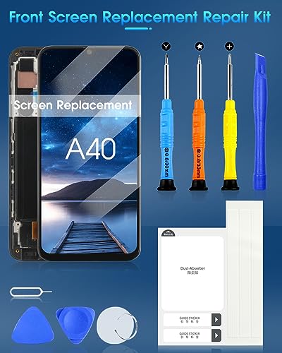 【Qualità Garantita】: Schermo LCD sostitutivo di alta qualità per Samsung Galaxy A40, visualizza le immagini in modo più chiaro e fedele. Ogni schermo è stato testato prima della spedizione con test di alta e bassa temperatura, vibrazioni e altri test di invecchiamento dal team QC. Si avvicina il più possibile a un nuovo schermo originale.