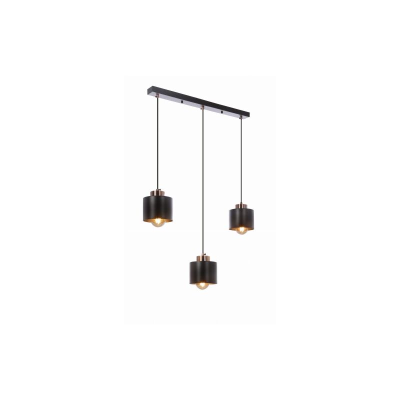 Lampada da soffitto a sospensione con paralumi in metallo nero opaco e rame in stile loft. La lampada da soffitto Olena è composta da paralumi in metallo nei colori nero opaco e rame, sospesi su fili neri provenienti da un rivestimento del soffitto oblungo in metallo nero. La lampada può essere accorciata, il che la rende adatta all'uso sia in ambienti bassi che alti La lampada da soffitto Olena dispone di tre sorgenti luminose con attacco E27. Ciò rende possibile l'utilizzo sia di sorgenti luminose tradizionali che a LED. Olena è una sedia dal design minimalista, moderno e loft. Verrà utilizzato in sala da pranzo, camera da letto, soggiorno, stanza della gioventù, corridoio, ufficio, hotel Materiale: sospensione in acciaio, paralume in acciaio Colore base: nero Altezza: 100. Larghezza: 64. Profondità: 12. altezza/larghezza/profondità): 100x64x12. Peso (netto): 1,28 LED integrato: No Numero di sorgenti luminose: 3 Sorgente luminosa inclusa: No Numero di sorgenti x base: 3xE27