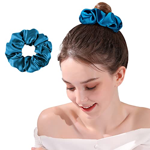 OLESILK Cravatta per capelli in seta 100% elastico per capelli accessori per capelli elastico codino anelli per capelli fasce elastiche per capelli per ragazze o donne, 1 pezzo, Blu pavone