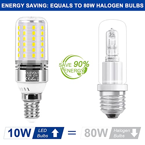 OLEVOLT Lampadine LED E14 10W Luce Fredda 5000K 1200LM LED Lampadina Mais E14 Equivalente 80W Lampada Alogena, Non Dimmerabile Nessun Sfarfallio Lampadina E14 Risparmio Energetico Lampade Set di 6