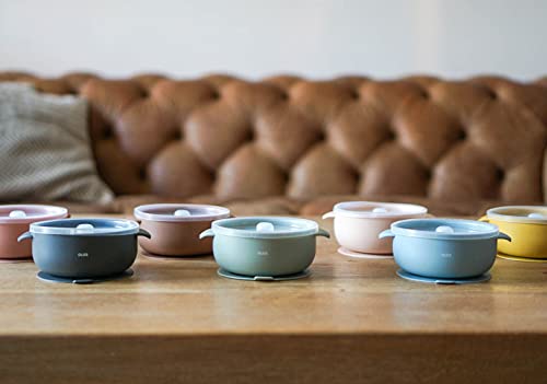 OLGS Ciotola in silicone con coperchio e ventosa per neonati e bambini, ciotola per porridge antiscivolo, senape, giallo, stoviglie per bambini in silicone, per ragazzoragazza, senza BPA, lavabile