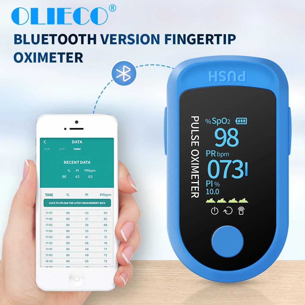 OLIECO Bluetooth Fingertip Pulse Oximeter Household PR PI SPO2 Blood Oxygen Sturation Meter 8S Auto Shutdown 4 Display Direction