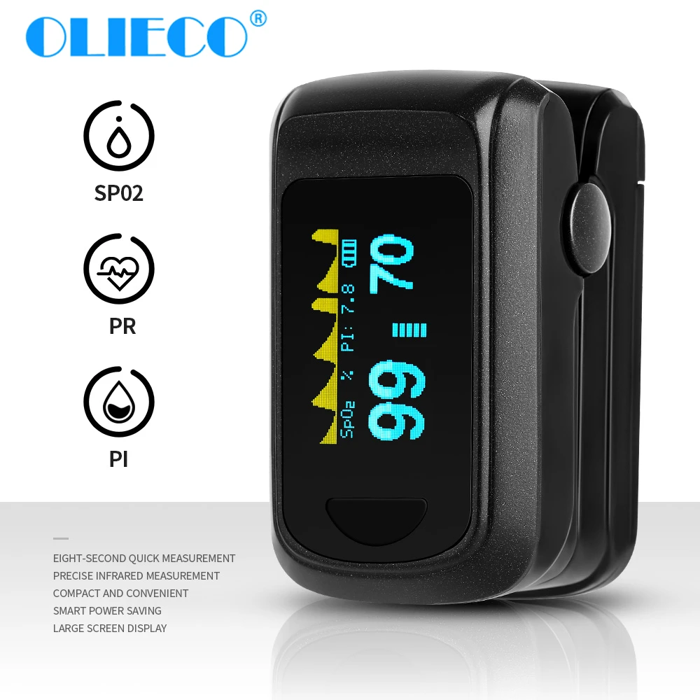 OLIECO LED Finger Pulse Oximeter SPO2 PR PI Oxymetre Blood Oxygen Meter Respiratory Rate Oximetro De Pulsioximetro Dedo 8S Test