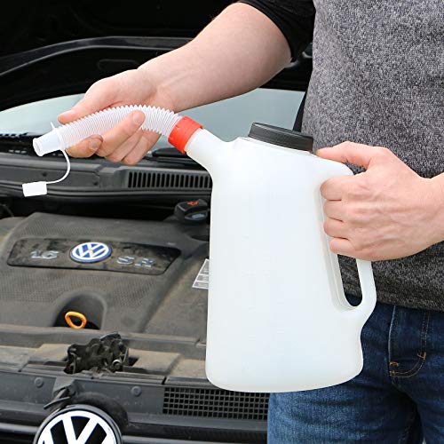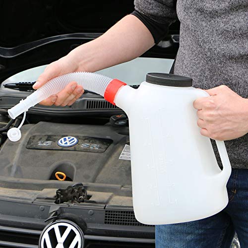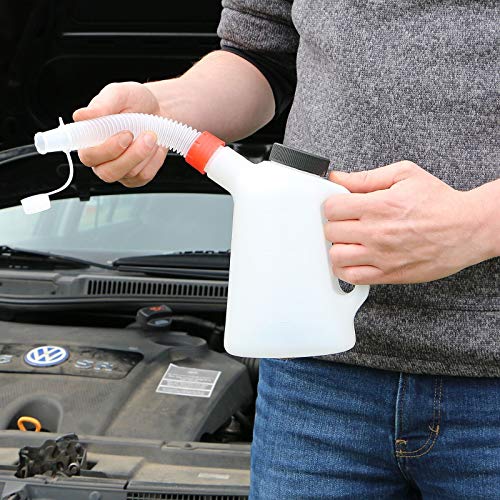 Grazie al collo lungo ed elastico è ideale per luoghi difficili da raggiungere come il serbatoio dell'olio o il serbatoio dell'acqua.