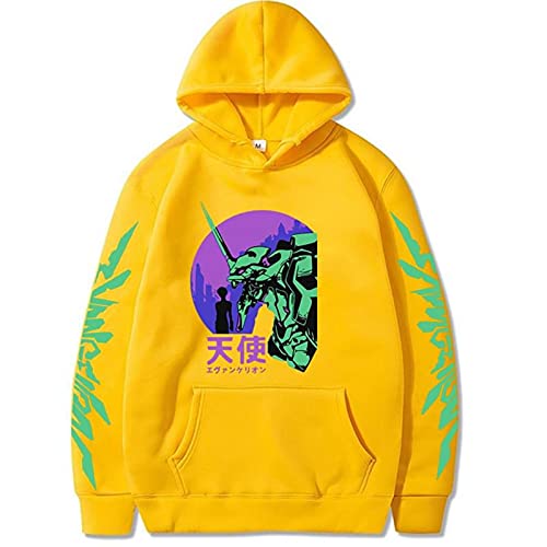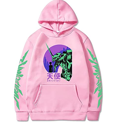 Oligeixx Divertente Giapponese Anime Evangelion Stampato Felpa con Cappuccio Uomo Donna Manga Felpe Unisex Streetwear Hip Hop Pullover Top