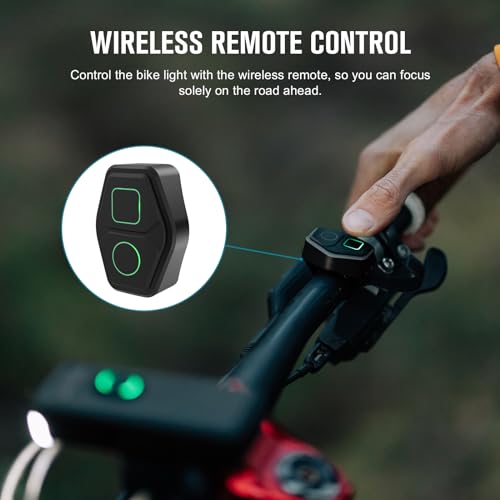 【Telecomando Wireless】Togliere le mani dal manubrio, basta muovere la punta delle dita, il tasto "□" del telecomando, un tasto per passare a estremamente luminoso, veloce e sicuro.