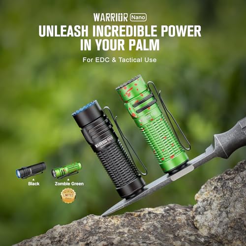 Olight Warrior Nano EDC Torcia Tascabile 1200 LM Dimensioni ridotte, Alta luminosità, Ricaricabile, Doppi pulsanti, Display carica residua,Adatta per esterni, Escursionismo,Campeggi(Verde zombie)