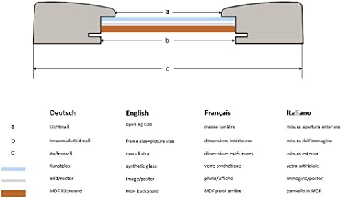 La misura indicata è sempre la dimensione dell'immagine. Ciò significa che le cornici sono realizzate in modo tale da inserire una foto con la dimensione indicata. Misura la tua immagine e cerca una cornice con questa misura. Larghezza della cornice: 45 mm