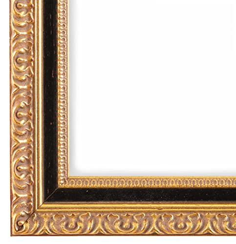 OLIMP-27 Cornice portafoto 24 x 28 cm in vero legno barocco in colore oro antico nero decorato