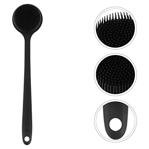 OLIMY Long Handle Shower Brush Silicone Bath Brush Silicone Back Brush Back Body Brush for Women Men (Black)