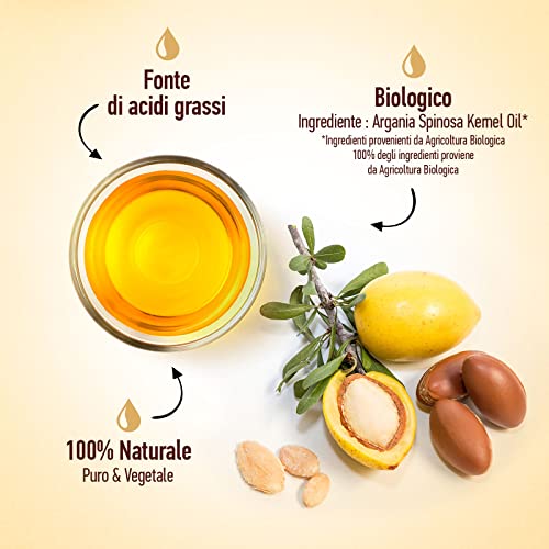 OLIO DI ARGAN PURO: il nostro olio vegetale di Argan è puro al 100%. È composto solo da Argania Spinosa Kernel Oil. L'olio di argan è un olio vegetale ottenuto dalla lavorazione artigianale dei semi dell'argania spinosa