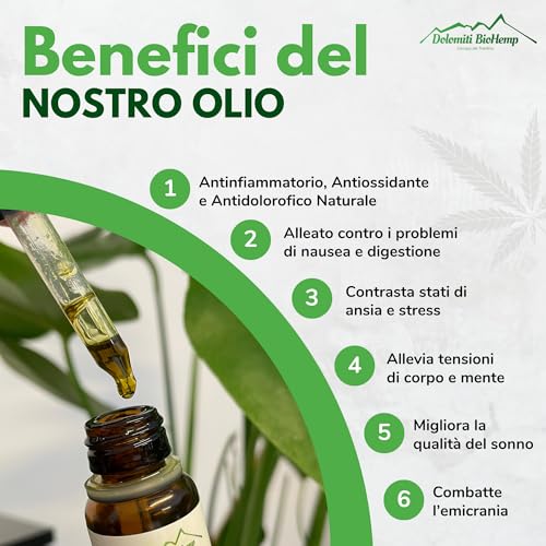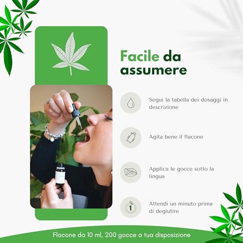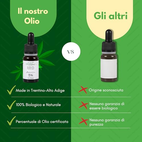 Olio di Canapa 15% - 100% Naturale e Vegan - Made in Italy, Prodotto in Trentino Alto-Adige - 200 gocce addolcito con olio EVO (Olio Canapa 15% (Confezione da 1))