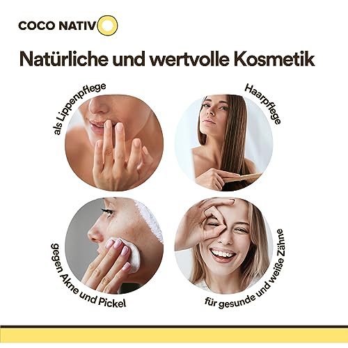 CocoNativo - olio di cocco biologico inodore contenente acido laurico, 100 % grezzo, vegano, senza glutine e senza lattosio.
