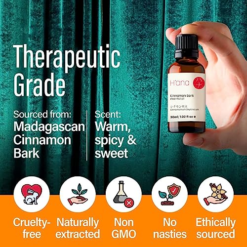 H'ana Olio essenziale di corteccia di cannella per diffusore - Olio di corteccia di cannella di grado terapeutico puro e naturale al 100% per pelle,aromaterapia,bombe da bagno,saponi e candele (30ml)