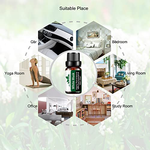 Olio Essenziale Muschio Bianco per Diffusori, Olio Muschio Bianco Olio Aromaterapia Muschio Bianco Puro 10ml Oli Essenziali Muschio Bianco Terapeutico per Pelle, Casa, Candele, Donna, Uomo