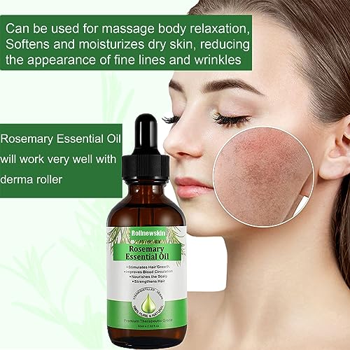 Olio essenziale di rosmarino (60 ml) + Derma Roller 0,5 mm per la crescita dei capelli, la cura della pelle, la crescita delle sopracciglia e delle ciglia