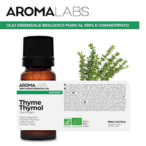 BIO - Olio essenziale TIMO TIMOLO - 10mL - 100% Puro, Naturale, Chemiotipizzato e Certificato AB - AROMA LABS (Marchio Francese)