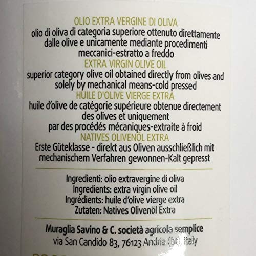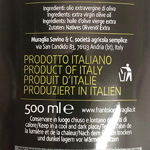Olio Extra Vergine di Oliva Muraglia Monocultivar Coratina: Denocciolato e Intenso 500 ml x 2