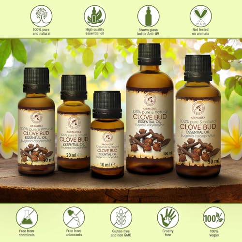 Pure Clove Bud Gli oli essenziali sono ampiamente usati: per aromatizzare gli ambienti, per lo Yoga, per il miglioramento dell'umore, quando si prendono bagni aromatici, per inalazioni, massaggi, per migliorare le proprietà dei prodotti di bellezza, per la cura dei capelli e della pelle e molte altre aree di applicazione.
