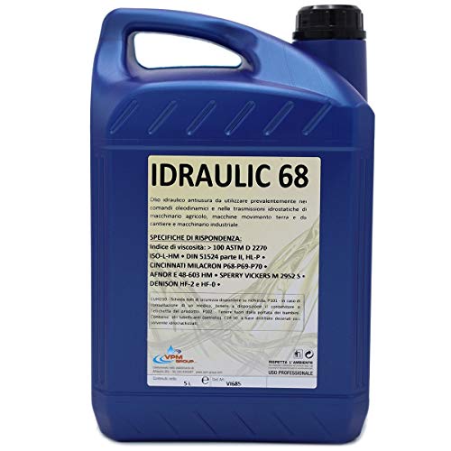 5 Litri, Indice di viscosità_100 ASTM D 2270, IS0_L-HM, AFNOR E 48.603 HM, DENISON HF-0, DENISON HF-2, DIN 51524, MILACRON P68, MILACRON P69, MILACRON P70, SPERRY VICKERS M 2952 S, Hydraulic 68