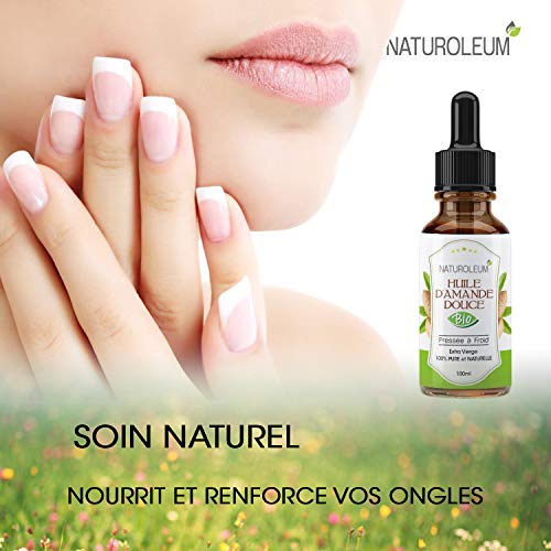 100% OLIO DI MANDORLE BIOLOGICO DI QUALITÀ PREMIUM: Puro e naturale. Olio non raffinato e spremuto a freddo per una conservazione ottimale. Olio con certificato biologico ottenuto dall'associazione del suolo. imbottigliato in Francia.