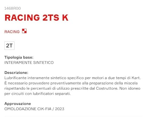 OLIO MISCELA KART 2T PAKELO RACING 2TS K 100% SINTETICO OMOLOGATO CIK-FIA/ 2023 (1 LITRO)