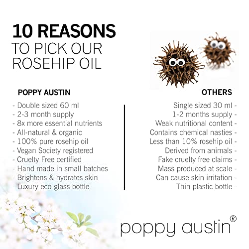 ✔ MIGLIORE QUALITÀ - L'olio di rosa canina Poppy Austin è fatto a mano e proviene da fonti gestite responsabilmente, utilizzando solo i migliori semi di rosa rubiginosa biologica e con tripla filtrazione per la massima purezza. Ogni lotto è raccolto in piccole quantità e pressato a freddo usando tecniche d'estrazione tradizionali. Poppy Austin o