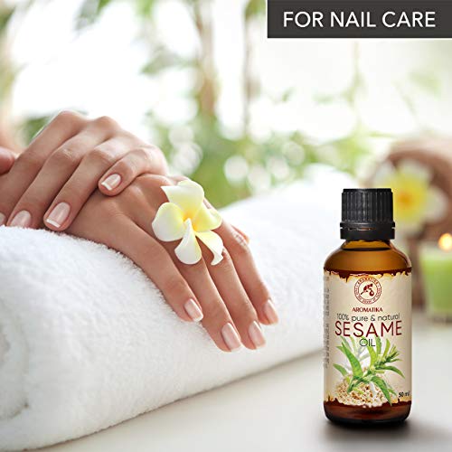 Olio di Sesamo 50ml - Sesamum Indicum - Messico - Naturale e Puro al 100% - Olio Basico - Cura Intensiva per Viso - Corpo - Capelli - uso Puro - Olio per Capelli - Rilassante - Ingredienti di Qualità