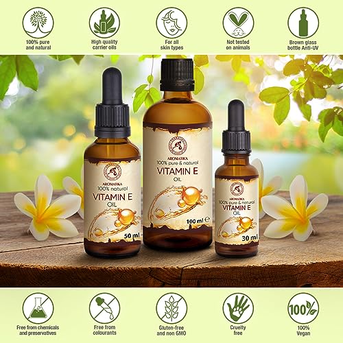 Olio di Vitamina E 100ml - Naturale - Olio di Bellezza - Olio Anti Invecchiamento Contro le Rughe di Tutti i Tipi - Viso - Pelle - Cura del Corpo - Capelli - Ideale per Pelli Sensibili