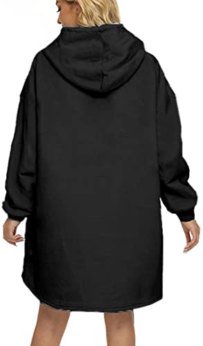 OLIPHEE Felpa di con Cappuccio per Inverno A Tinta Unita per Tempo Libero Coperta Morbida e Calda per Ragazze e Donna Nero Taglia Unica