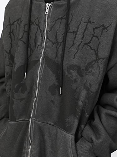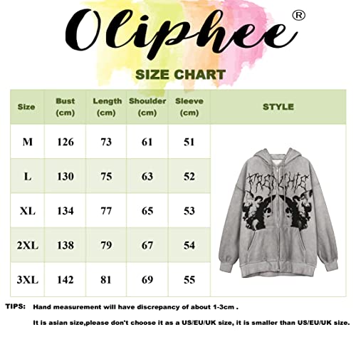 OLIPHEE Felpe con Cappuccio Stile Y2K Disegno con Ali d'Angelo Hoodies con Cerniera Sciolto per Donna e Ragazze 3XL Grigio Scuro-Angelo