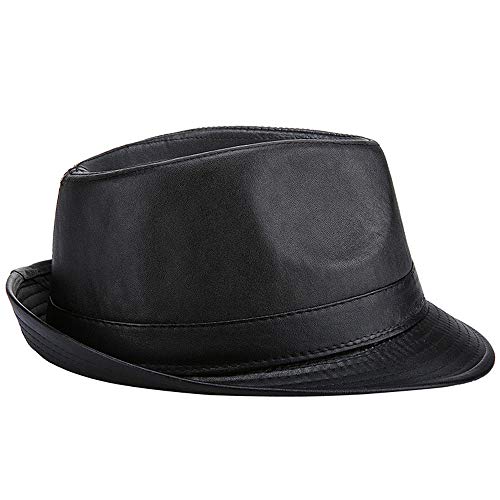 OLIS,Retro Cappello In Pelle Uomo Jazz Fedora Panama Gangster Berretto Invernale,Coffee-58CM