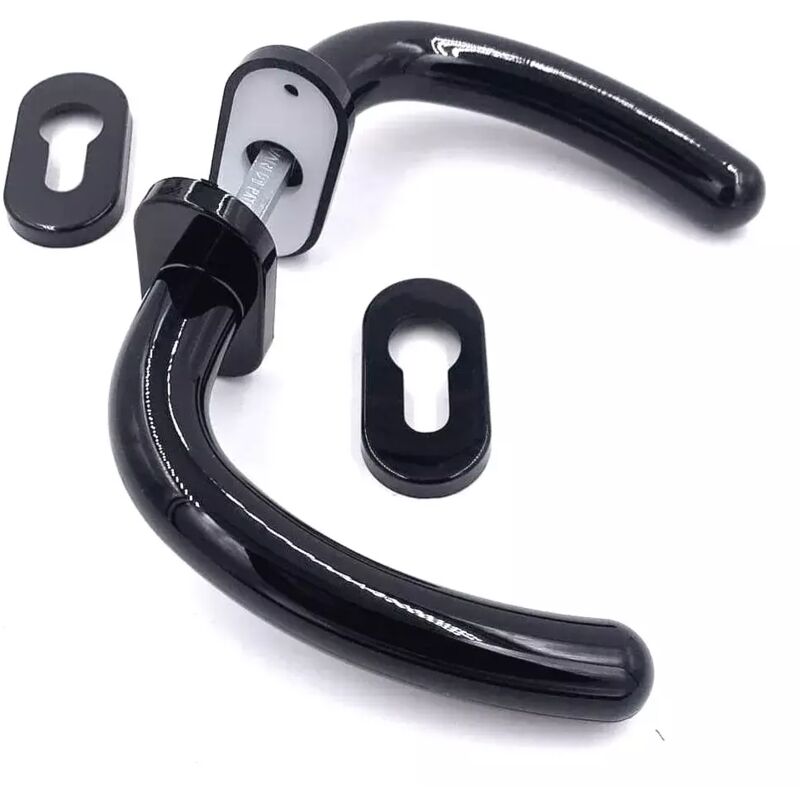 Maniglia OLIVATI Iseo in Nylon, finitura Nera, con rosetta e bocchetta Ovale foro Yale . La confezione comprende 2 Maniglie, 2 Bocchette e il ferro quadro di collegamento ( foto ) Misure: Maniglia 134 mm Bocchetta 60 x 30 mm Ingombro totale 70 mm Colore: Nero