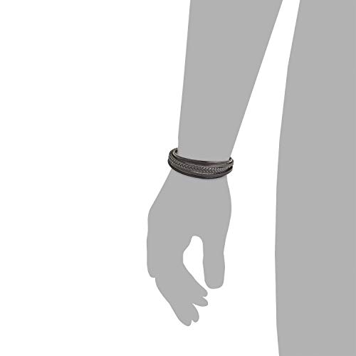 S.Oliver 566438 - Braccialetto da uomo, intrecciato, misura regolabile, in acciaio inox e cuoio, 21,5 cm