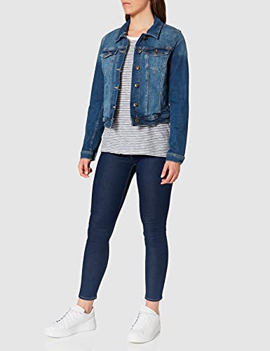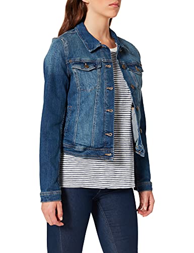 Giacca di jeans croccante effetto invecchiato, con due tasche applicate e vestibilità aderente