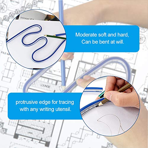 OLRWSLG 2 Pezzi Curvilinee Deformabile Righello Curva Flessibile Strumento di Misurazione Righello Integrato di Curva per Disegnare Curve, Tecnici, Abbigliamento Disegni (Blu, 60 cm e 30 cm)