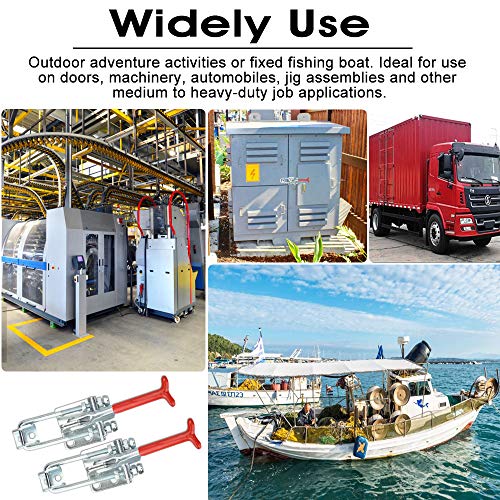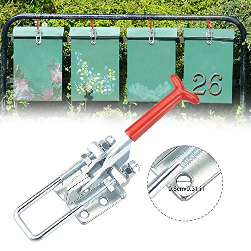 ✅【Materiale di alta qualità】Il morsetto a scatto è costituito principalmente da materiale in lamiera d'acciaio laminata a caldo con rivestimento zincato, alta resistenza, forte resistenza all'usura e resistenza alla corrosione. L'esterno di questa chiusura a ginocchiera con chiusura a leva adotta un manicotto in gomma rossa in PVC pressofuso ad alta temperatura, resistente all'olio e allo sporco, antiscivolo e resistente all'usura e non danneggia le mani.