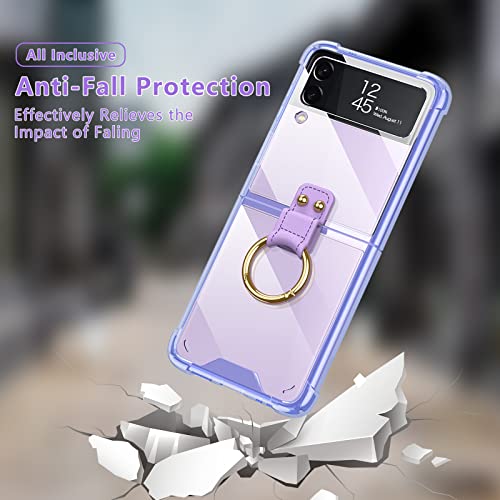 Olycism Custodia per Samsung Galaxy Z Flip 3 5G trasparente Custodia per telefono con supporto ad anello Quattro angoli ispessiti PC Cover compatibile con Samsung Galaxy Z Flip 3