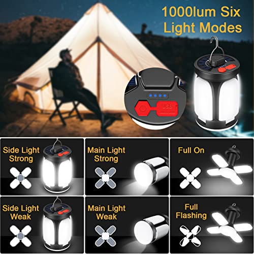 Olycism Lampada Campeggio LED Solare Ricaricabile USB Lanterna da Campeggio Portatile Luce 4500mAh 6 modalità SOS impermeabile USB ricaricabile da campeggio portatile per Campeggio Pesca Emergenza